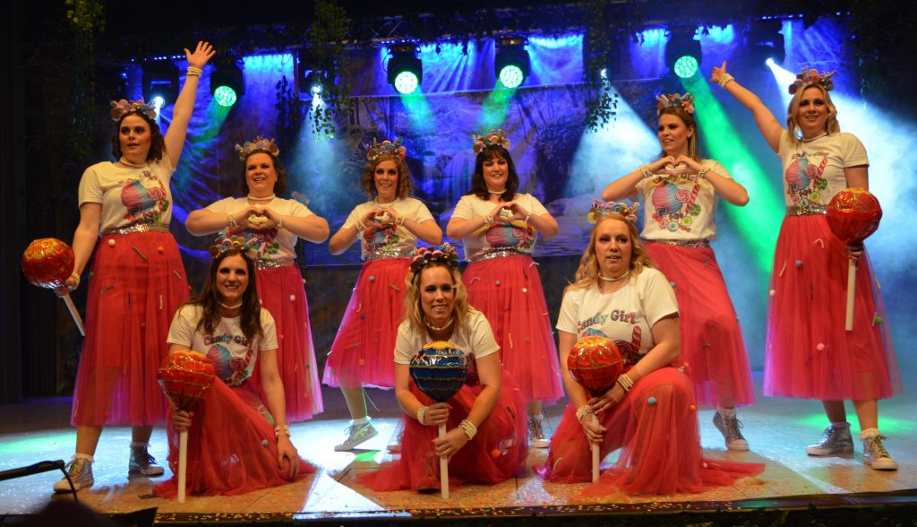 Zucker, Honig und Kürbiskuchen. Die „Nachtgrabben“ um Sabrina Keck und Annabell Heitz schwelgten bei ihrem Tanz verführerisch in zuckerreichen Süßigkeiten und verteilten beim Einzug bereitwillig Lollipops an die Saalgäste.