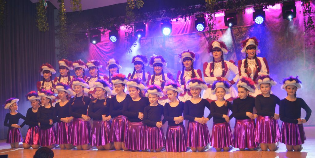Einen glanzvollen Schlusspunkt in hoher Qualität setzten die Hupfdolen. Alina Fimeyer und Charlotte Wirth ließen sich mit ihrem erweiterten Prinzengarde-Team vom Motto des Abends inspirieren. Die jungen, hübschen Damen zeigten einen fernsehreifen Dschungel-Tanzauftritt. Tontechniker Manfred Hummel hatte diesmal vorsichtshalber die Zugabe vorbereitet. Und die wurde heftig gefordert und auch geliefert.