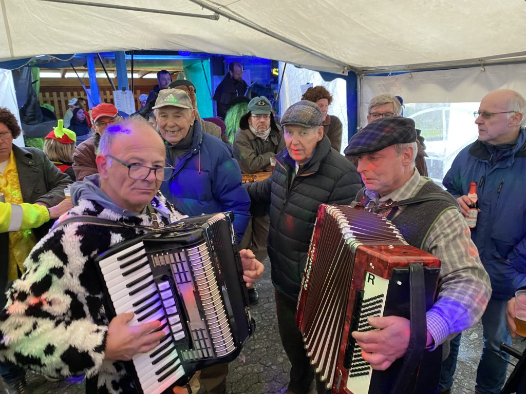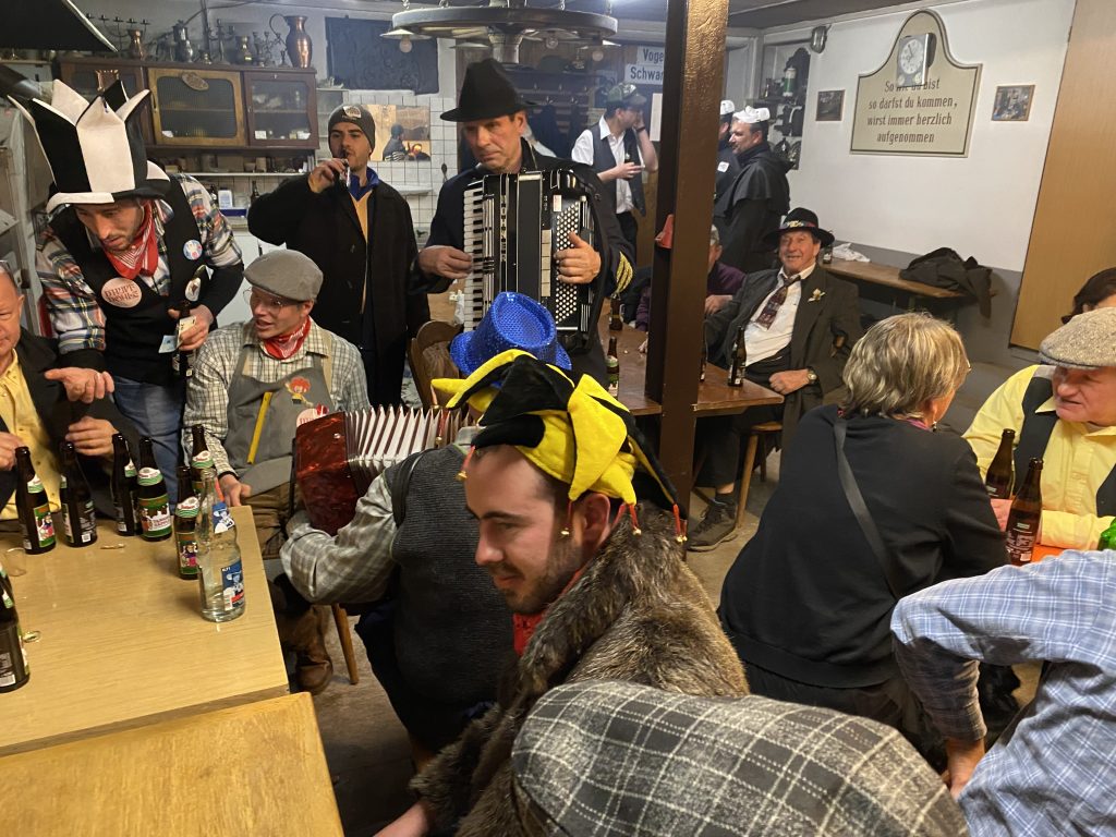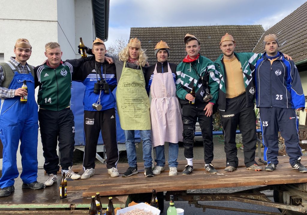 Amüsante Geschichten aus dem Dorf wurden am frühen Montagmorgen auf dem traditionsreichen, rollenden Litzmer Fastnachtwagen von der Dorfjugend präsentiert. „Was da wieder alles passiert ist, werde ich euch jetzt brühwarm um die Ohrläpple schmieren“, schmunzelte Ausrufer Robin Lesniak. Vom feuchtfröhhlichen Feuerwehrausflug wurde unter anderem berichtet und am Schluss wurde von den Zechbuben traditionell ein kleines Theaterstück gespielt, bei dem dieses Mal eine amüsante Geschichte vom Schützenfest präsentiert wurde. An insgesamt sechs Stationen im Dorf war der Fasnachtswagen am Montag in Leutesheim zu sehen.